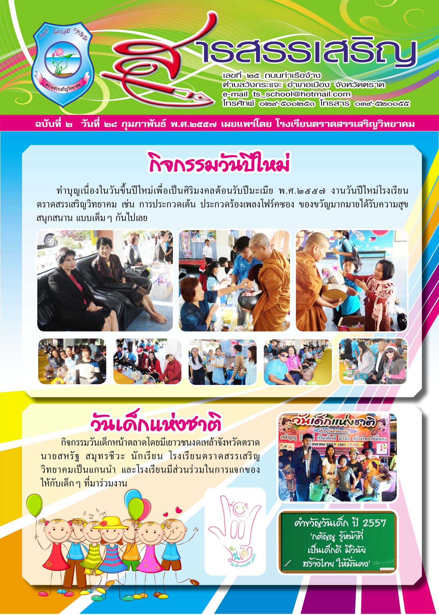ฉบับที่ ๒ วันที่ ๒๘ กุมภาพันธ์ พ.ศ.๒๕๕๗ เผยแพร่โดย โรงเรียนตราดสรรเสริญวิทยาคม