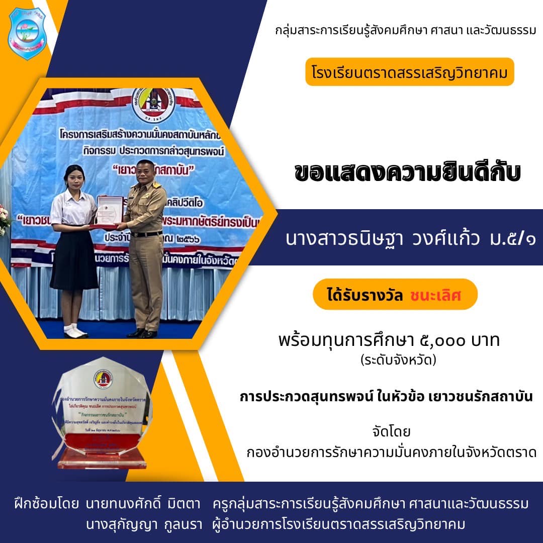 ยินดีต้อนรับสู่เว็บไซต์โรงเรียนตราดสรรเสริญวิทยาคมด้วยความยินดียิ่ง